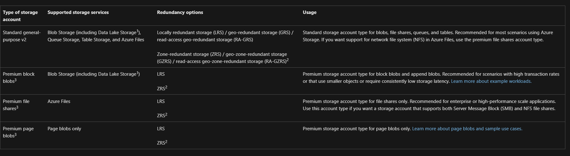 #### 5. Types of storage accounts
