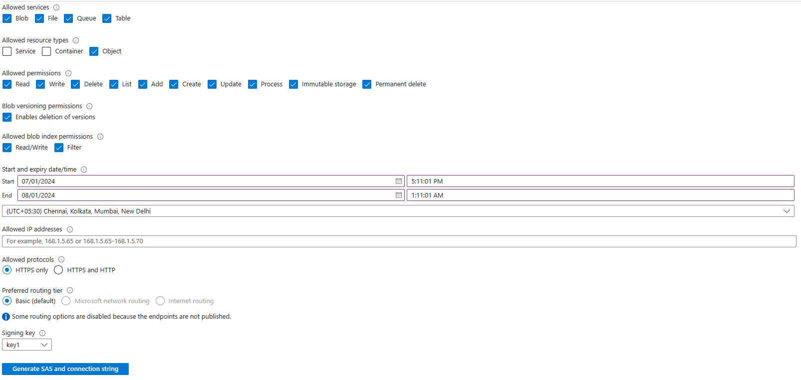 * Blob service SAS URL: This is used to access the objects inside Blog.